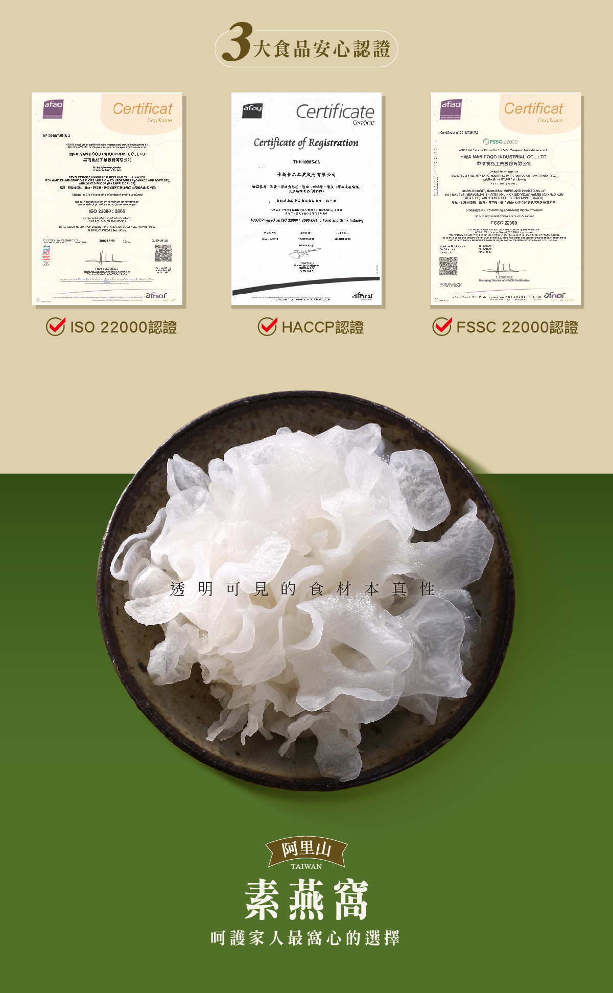 ◆通過三項工廠安全驗 ✔ HACCP ✔ ISO22000 ✔ FSSC22000