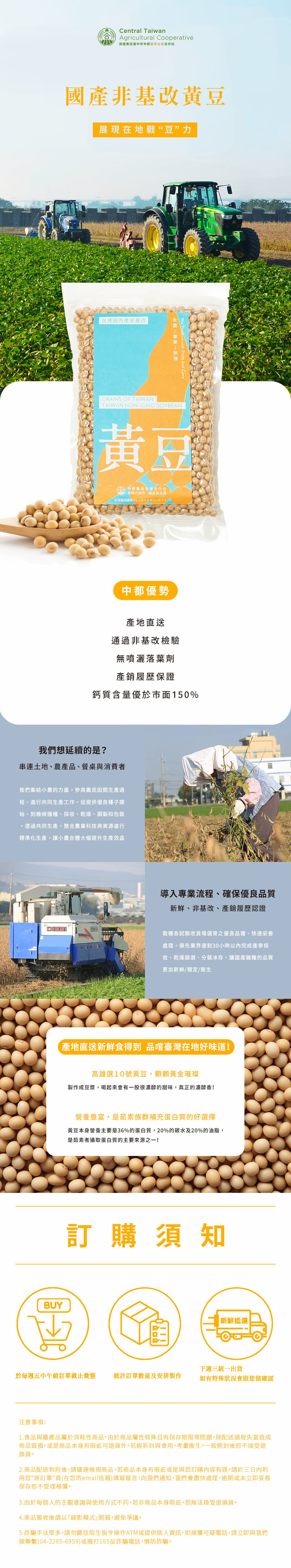 注意事項:本產品因不使用落葉劑,黃豆於採摘過程中,可能有些微沾染到噴濺的雜草枝葉,清洗過後即能放心食用。